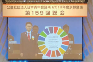 1月19日(土) 2019年度京都会議にて第159回総会が開催され、サマーコンファレンス開催への御礼と全国の各地会員会議所の皆さまへ(公社)日本青年会議所の伴走者として下支えをお約束をさせていただきました。
