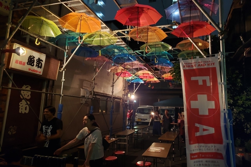 野毛柳通りでは22時から道路を歩行者天国にしてマーケットがひらかれ、ハシゴ酒をクイズ形式で行う、ドリンクイズラリー、そしてSDGsカラーの傘がかけられた私有地において飲食スペースが設けられ、通りににぎわいをもたらしました。