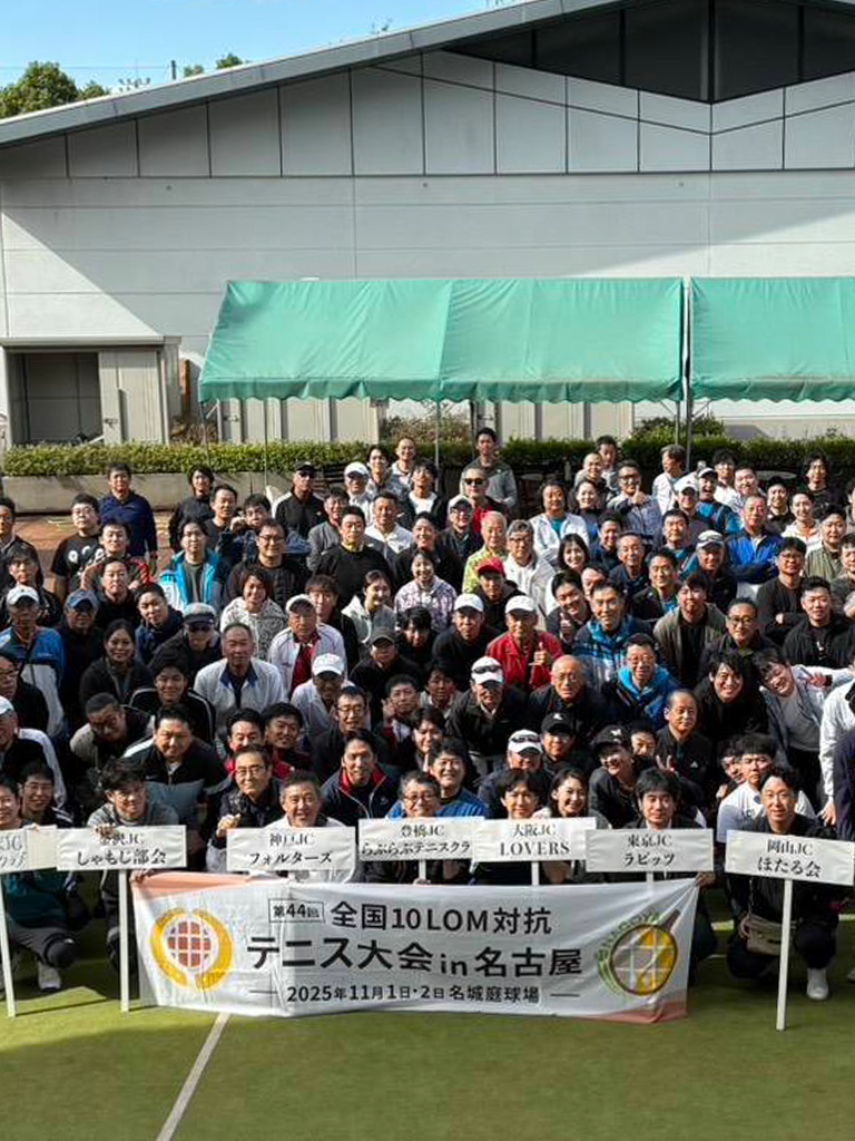 テニス部は、「久しぶりの人も、ラケット初めての人も大歓迎」を合言葉に活動しているクラブです。月1〜2回、横浜市内および近郊のコートでナイター中心の練習会を行い、基礎練習からゲーム形式まで、レベルに合わせて楽しめる内容を心がけています。ここ数年は新メンバーの参加が特に増えており、今年も初参加のメンバーが多数デビューしました。6月には神戸JCフォルターズとの交流戦で淡路島遠征を行い、テニスだけでなく懇親会や観光も含めて、一泊二日の“部活合宿”のような時間を過ごしました。また、全国各地のメンバーが集まる10LOM大会にも参加し、他LOMの仲間とのネットワークづくりにもつながっています。運動不足解消から本気でうまくなりたい方まで、ラケット1本で気軽に飛び込めるクラブです。テニスを通じて、JCの仲間と汗をかきながら笑える時間を一緒につくっていきましょう。