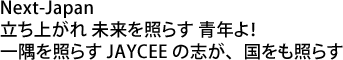 未来は脚下にありといいますが、Next-Japanの構築には、まずは「自立した国家」が前提となります。その「自立した国家」は、「自立した地域」とそれを支える「自立した国民」によって成り立ちます。同様にNext-Japanを構築するには、JC組織もまた「自立したNOM」を前提とします。「自立したNOM」は、「自立したLOM」と「変革の能動者として、個を確立したJAYCEE」によって創られます。