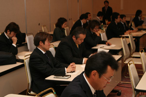 坂田副理事長の挨拶、褒賞審査会議長でもある大谷専務の挨拶に続き、工藤副委員長よりJCI─AWARDについて、カテゴリー説明、WABページ申請方法等の説明があり、各委員会の褒賞担当者は熱心に耳を傾けていました。