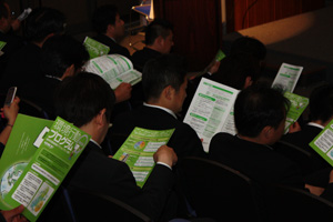 続いての講師講演では、(社)日本経済団体連合会 21世紀制作研究所の澤昭裕氏による、「環境問題の真実とは」をテーマにしたご講演頂きました。 1997年に制定された京都議定書を題材に各国間の取組の温度差、経済成熟度等、国家間格差が絡んだ環境問題の表と裏など興味深い事が語られ、環境問題に対する様々な対策の本質を見極め、メディアに左右されない確かな見識を持ち、この問題の本質的な解決に向け理解を深める機会となりました。又、講演終了後には横浜市環境創造局 古山課長より、地域のステークホルダーとともに実施予定の環境対策の概要についてご説明頂きました。