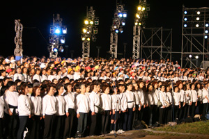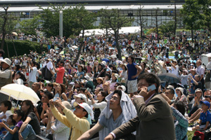 最終日である、開港記念日の6月2日には、かながわ観光親善大使でもある人気アーティスト「キマグレン」によるステージも開催され、途中、地元横浜出身である「ゆず」も飛び入り参加して横浜開港150周年テーマソング「みらい」を熱唱してくれました。また、恒例の「横浜銀行ドリーム・オブ・ハーモニー」では、例年1000人の定員を今年は150周年を記念して1500人に増員。横浜市歌など全8曲を大合唱しました。最後に開港祭の締めでもある約4,000発の花火を打ち上げる「ビームスペクタクル in ハーバー」が開催され、約40分間のをレーザー光線と音楽と花火のショーが終わると観客から大きな拍手と歓喜が湧き上がりました。