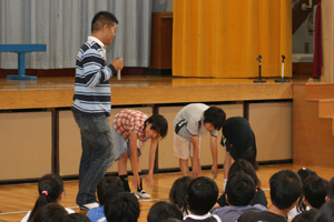 6月11日、横浜市立桜井小学校(栄区)において、高畑先生(メンタルトレーナー)をお招きして、「はまっこスクール2009輝き授業」が開催されました。分かりやすく「心」と「体」の仕組みを伝える為、時折、自分たちの体を使わせて実践する講演内容に体育館に集まったこどもやおとなも夢中で耳を傾けていました。 最後にこどもたちから高畑先生に謝辞が述べられ、セミナー終了後、高畑先生と子ども達で給食を楽しみました。