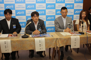 徳増理事長をはじめ、中田市長、安里会頭、サマコンナビゲーターの澤山璃奈さんが マスコミ各社の取材陣前に登場し、開催概要及び横浜で開催する意義についてPRしました。