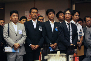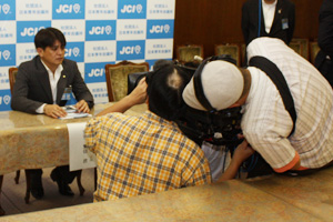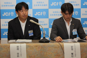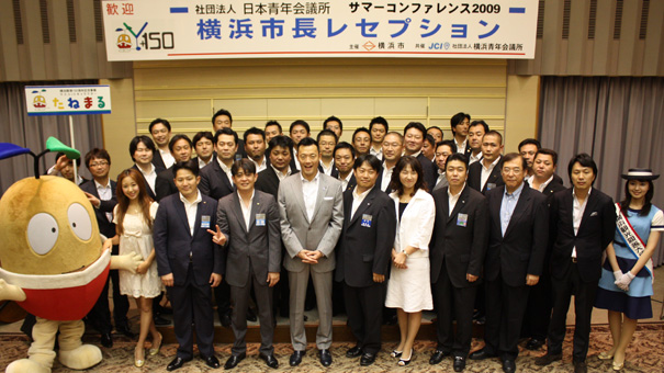また、記者会見後は、場所を市長公舎に移して横浜市による市長レセプションが行われ、中田市長から歓迎の言葉とサマコンに対する熱いエールが送られると、安里会頭は「横浜開催のサマコンを JCの文化にしよう」と訴えました。会場は、ジャズの生演奏や「地産地消」を実践する地元の食材を使ったフランス料理で和やかながらも大いに盛り上がりを見せました。