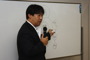 22日は坂田副理事長・湯川室長・担当委員会スタッフ、小林渉外室長によるJCの基礎知識などのベーシック研修、徳増理事長による「矜持」をテーマにした講演、(社)東京青年会議所OB佐藤泰博先輩による「人間魅あふれるリーダーを目指して」と題した講演、さらには研修技法を活かしたグループディスカッションと盛りだくさんな内容の研修が行われました。