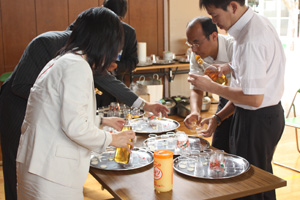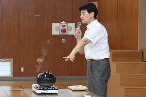 飯尾氏には、お米の栽培からお酒やお酢になる工程を詳しく紹介していただき、実際のお酢の舐め比べ等を通して、米の発酵について学びました。途中、給食をはさみ午後からは、秋沢氏による「おいしいごはん」の炊き方が実演され、お米の食べ比べが行われました。普段の授業では聞けないプロのお話に、参加した生徒は熱心に耳を傾け、メモとっている姿が印象的でした。