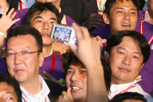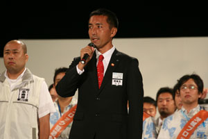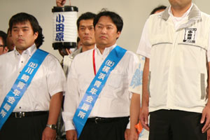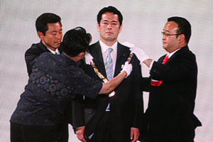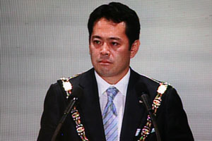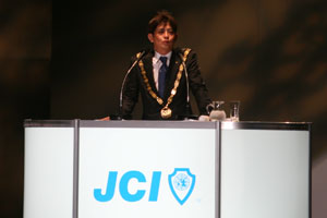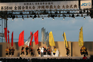 式典では、安里会頭メインスピーチの後、プレデンシャルリースが相澤会頭予定者へ伝達され、その後、次年度の全国会員大会(小田原・箱根)の主管LOMである小田原青年会議所に大会の鍵が伝達されました。