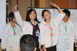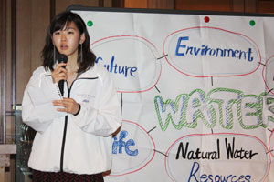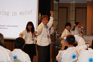 「SUNLIGHTS」、「POTA」、「EARTH FRIENDLY」、「WATER」、「STAR FISH」5チームそれぞれが、寸劇あり、歌あり、ダンスあり、様々に嗜好を凝らし、言語・文化・環境の違いを超えて一つに団結し、真剣に水の問題について検証したすばらしい成果発表となりました。