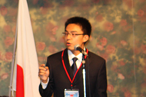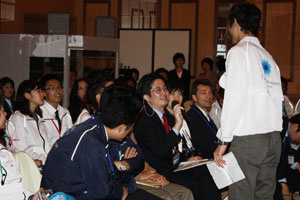 発表会場では、日本語、英語の同時通訳がはいり、学生たちも緊迫した様子。