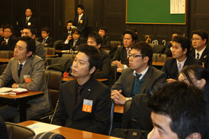 横浜ビジョン創造推進会議と拡大推進会議の合同会議が2月15日、横浜開港記念会館で行われました。 1.JC論と「知行合一」について 2.会員拡大から始まる「ひとづくり」「まちづくり」について 3.「変化に対応するJCから変革を創り出すJCへ」について 以上、3つのテーマのもと、会員約80人のが集い、熱い議論が交わされました。