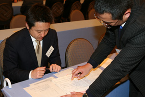 パンパシフィック横浜ベイホテル東急において、今回は見学者が正会員になるためのゲストオリエンテーションと、入会する方の初顔あわせの場である入会オリエンテーションの二本立てで行われました。(拡大・オリエンテーション特別委員会担当)