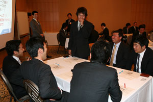 ゲストオリエンテーションは前回紹介した研修プログラムと同じものでしたが、講師は前回と代わって、前回講師である柳沢幹事(JCI公認トレーナー)から特訓を受けたという加藤副委員長が努めました。初めてとは思えないすばらしい講義で、人柄もあいまってとても温かく和やかな研修となりでした。