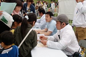 初日は時より小雨が降り、肌寒いなかの開催となりましたが、本日も朝から肌寒い陽気のなか開催されました。陽気とは裏腹に朝から大勢の来場者がありました。どこのブースも活気に溢れ、なかでもスウィーツパラダイスでは開始1時間前から多くの行列が出来るほど盛況でした。 また、本年度全国大会の開催地LOMでもあります、小田原JCの吉澤芳之理事長もお忙しいなかご来場頂き、横浜開港祭を満喫されておりました。