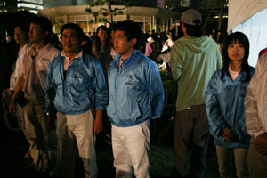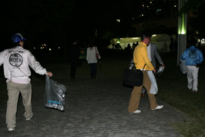 フィナーレは恒例のコンサート、市民によるドリーム オブ ハーモニー、ビームスペクタルinハーバーと続き、臨港パークの芝生が見えないほどに会場はご来場客の方々で埋め尽くされておりました。祭りの後のゴミ拾いを終えて、深夜の終礼にて今年の開港祭も無事に大団円を迎えることができました。 [記事:内田]