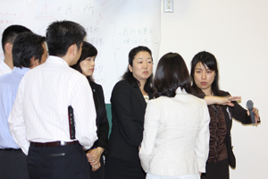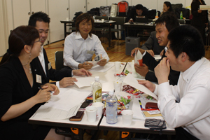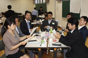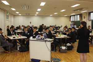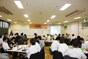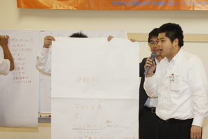 10日(土)の1日目は鈴木紀子委員(拡大・オリエンテーション特別委員会)を講師に4つのリーダー像から自分がどのタイプなのかをチェックシートに記入して決めた後、それぞれの違いを解説した「リーダーシップセミナー」を行い、続いて加藤英二副委員長(拡大・オリエンテーション特別委員会)から身だしなみやアイコンタクト等、6つのコツから成り立っている「プレゼンテーションセミナー」が行われました。意見の違う人もまずは受け入れる事を知りました。休憩後、議案の大切さを知って頂くのを目的に「ワールドカフェ」と銘打ち議案作成に必要の知識を既存メンバーからしっかりと学び、グループごとに発表を行いました。