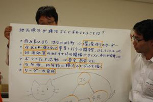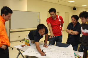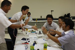 セミナーは最初、頭の体操として道心に関するクイズが行われ、次に4、5人のグループに分かれグループ協力しながら出題された謎を解き危機を脱出する「リアル脱出ゲーム」(体験型チームビルディング)が約1時間行われました。10分休憩の後、第2部としてパーソナルブランドコンサルタントの山本秀行氏から「あなたのブランド(理想・価値観)を見つけ、行動へ」をテーマにワークショップ形式で約2時30分行われました。「ブランド→約束」、「他者評価」等、色々なことが学べました。