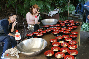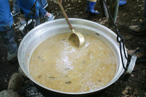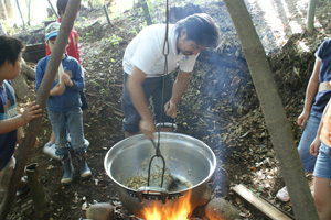 昼食は、採れたばかりの大根を使ったみぞれ餅とけんちん汁、おなじ畑で採れた野菜のサラダをみんなで一緒に作って食べました。畑で汗を流した分、本当に食欲旺盛な子供たちでした。