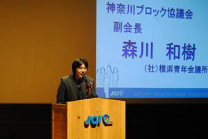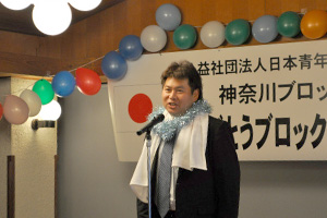 当日は横浜JCより出向されている多くのメンバーと一年の懇親を深め、同卒業生と盛大に一年を締めくくりました。第2回全体会議においては、各委員会の年間を通じた事業報告、本年度理事長紹介、次年度理事長紹介がありました。そして、高橋神奈川ブロック会長プレゼンツとして公益社団法人日本青年会議所監事であり、「OTONANOSENAKA」を日本中に広めた藤木智君(ひびきJC)の講演がありました。