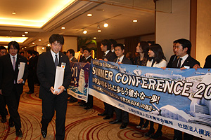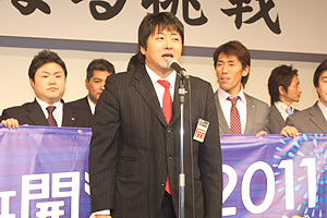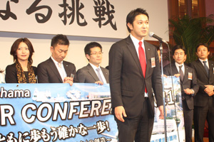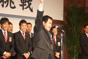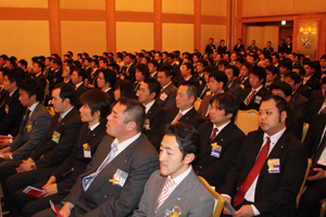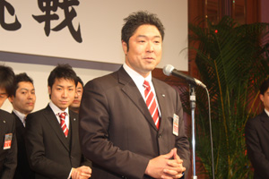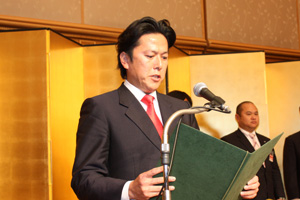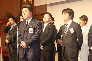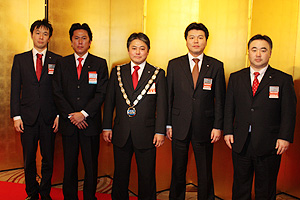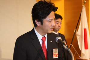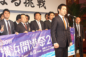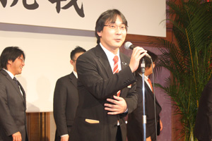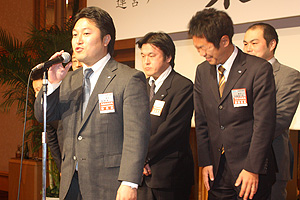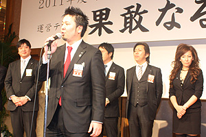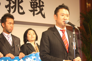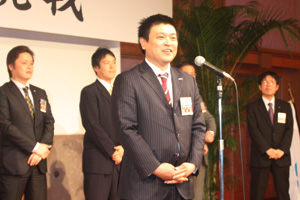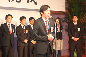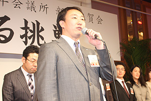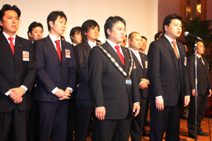 新年式典では、宝田理事長より所信表明が行われ、メンバーを始め多くの来訪JC、ご来賓の皆様に向けて本年度の横浜青年会議所の方向性が発信されました。来賓として挨拶された林市長は、不況下における横浜青年会議所メンバーの若いエネルギーによる経済活動への期待を多く寄せておられました。