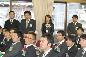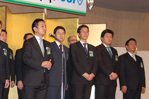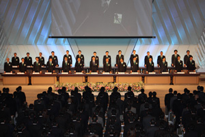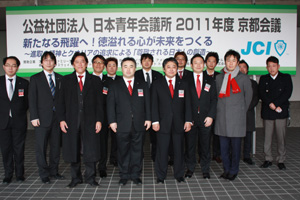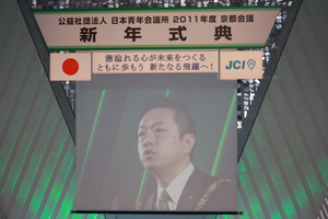 23日の新年式典では、厳粛なムードの中、福井会頭より2011年度の所信表明があり、会頭の思いが全国各地の青年会議所メンバーに語りかけられ、『徳溢れる心が未来をつくる ともに歩もう 新たなる飛躍へ!』を胸に刻み京都の地を後にしました。