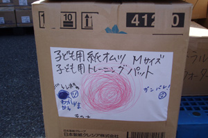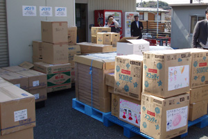 > 支援物資仕分け作業