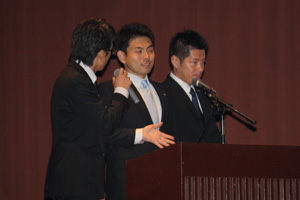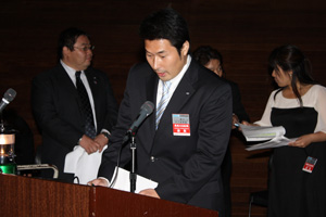 大桟橋ホールにて10月例会が行われました。 『輝かしい未来となる横浜の創造に向けて〜果敢なる挑戦〜』をテーマに、新入会員ならではの視点で横浜JCの将来像を想定した題材の提案発表が行われました。会場にはシニアの方も多く来られ、アイデアの詰まった発表に会場からは、笑いや歓声があがる楽しい例会となりました。