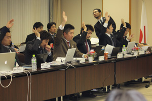 第13回理事会が産業貿易センターにて行われ、各報告議案・審議事項が粛々と上程されました。