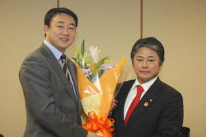 理事会終了後、宝田理事長から本年度卒業する理事者へ花束が贈与されました。