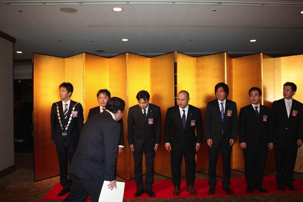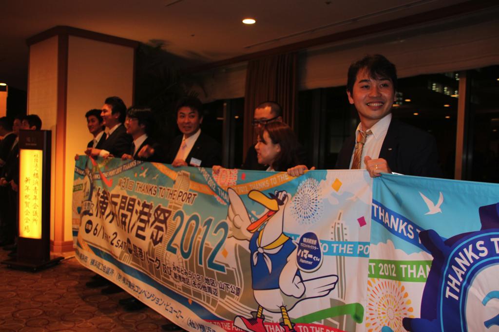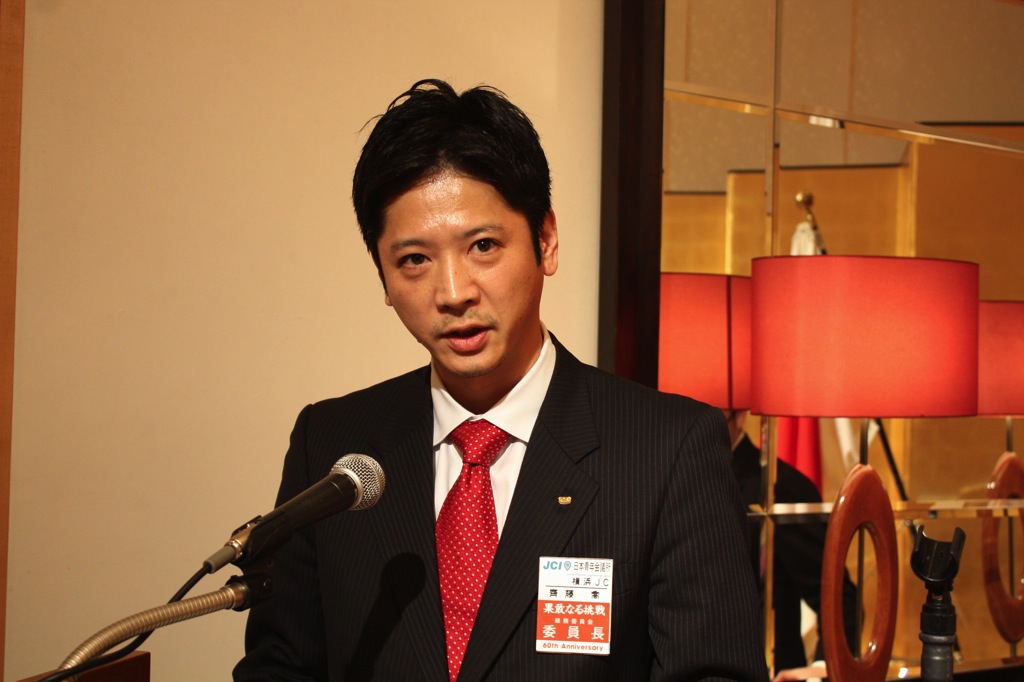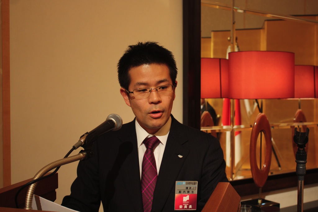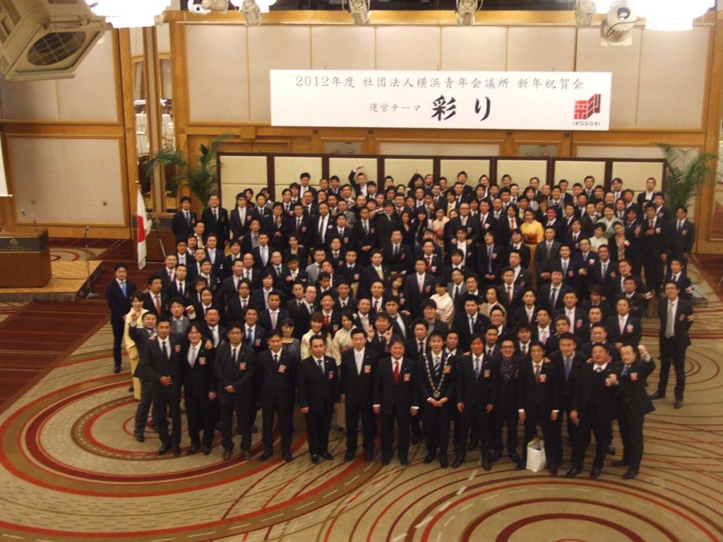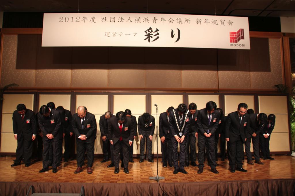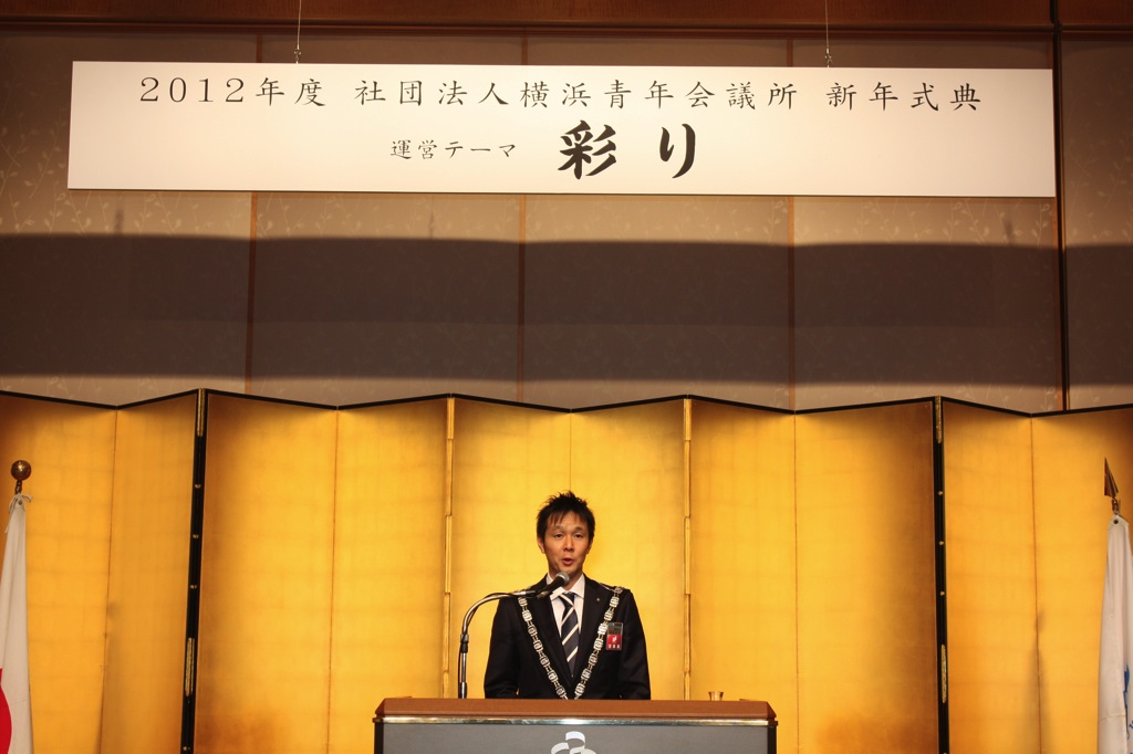 新年式典では、岡部理事長より所信表明が行われ、メンバーを始め多くの来訪JC、ご来賓の皆様に本年度にかける想いおよび横浜青年会議所の方向性が発信されました。来賓として挨拶された林市長からは横浜青年会議所が震災復興および地域経済活性化への強い原動力として多方面での活躍を強く望むと語られました。