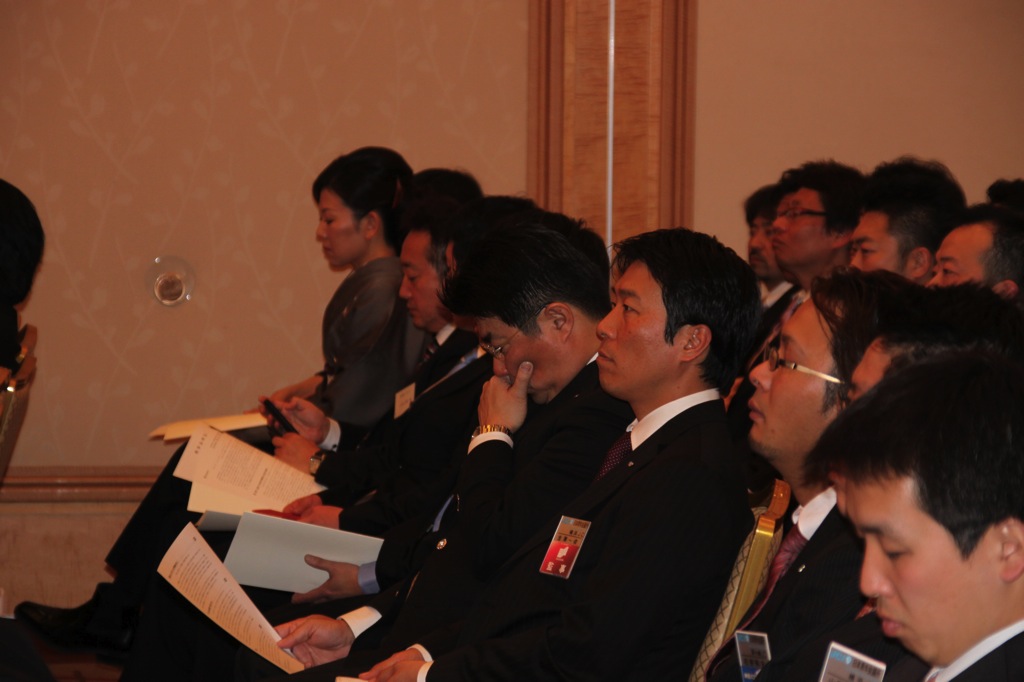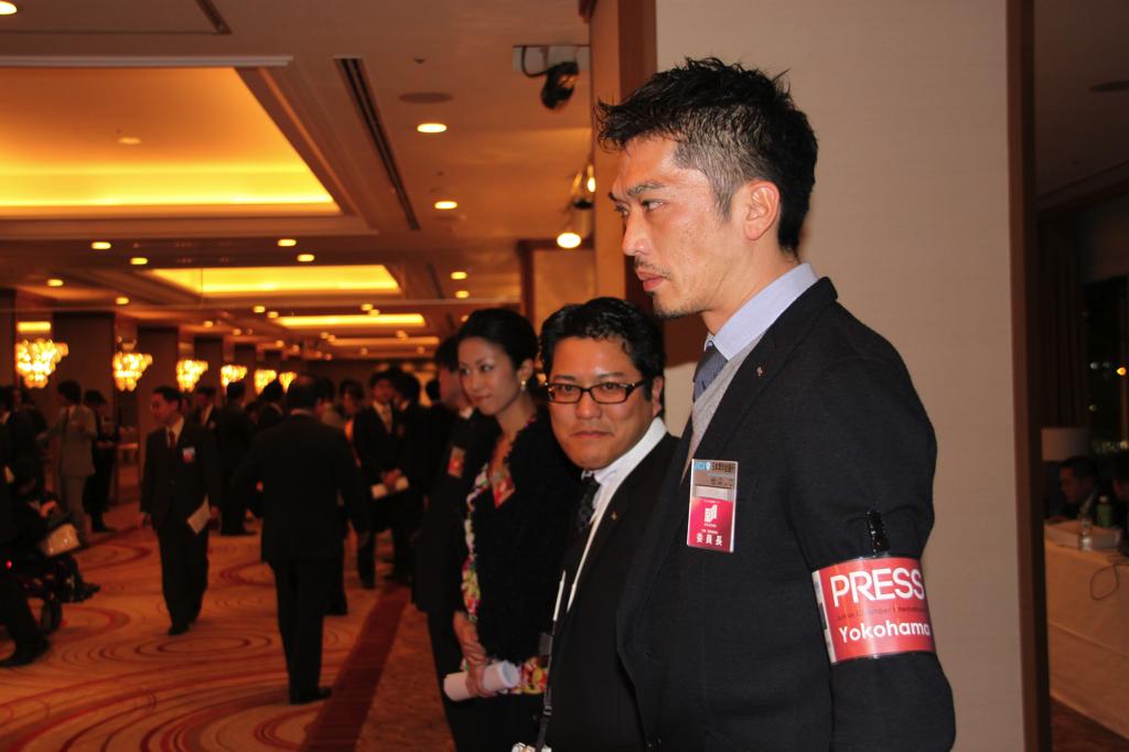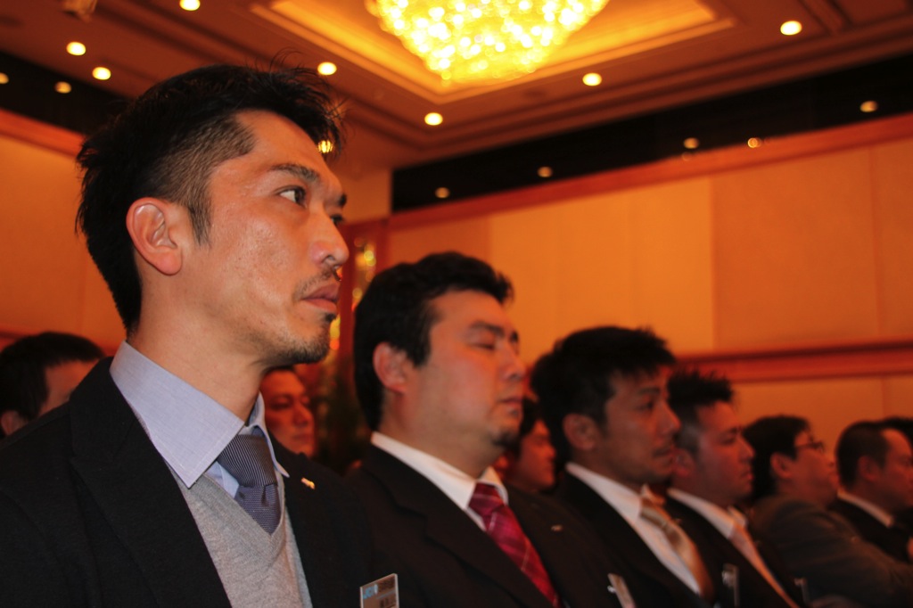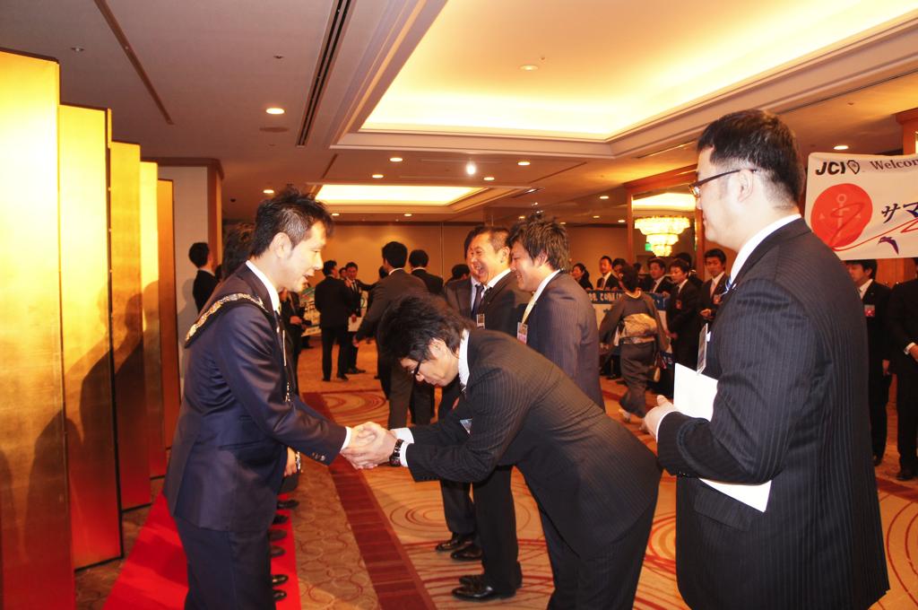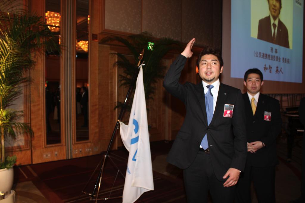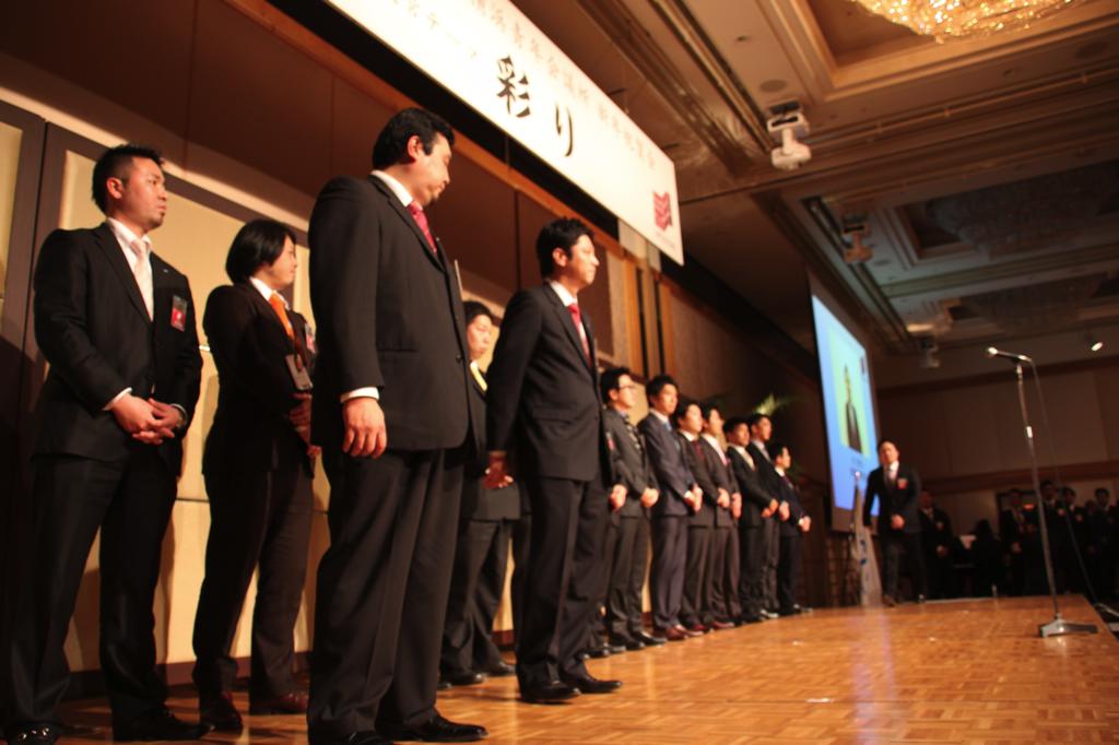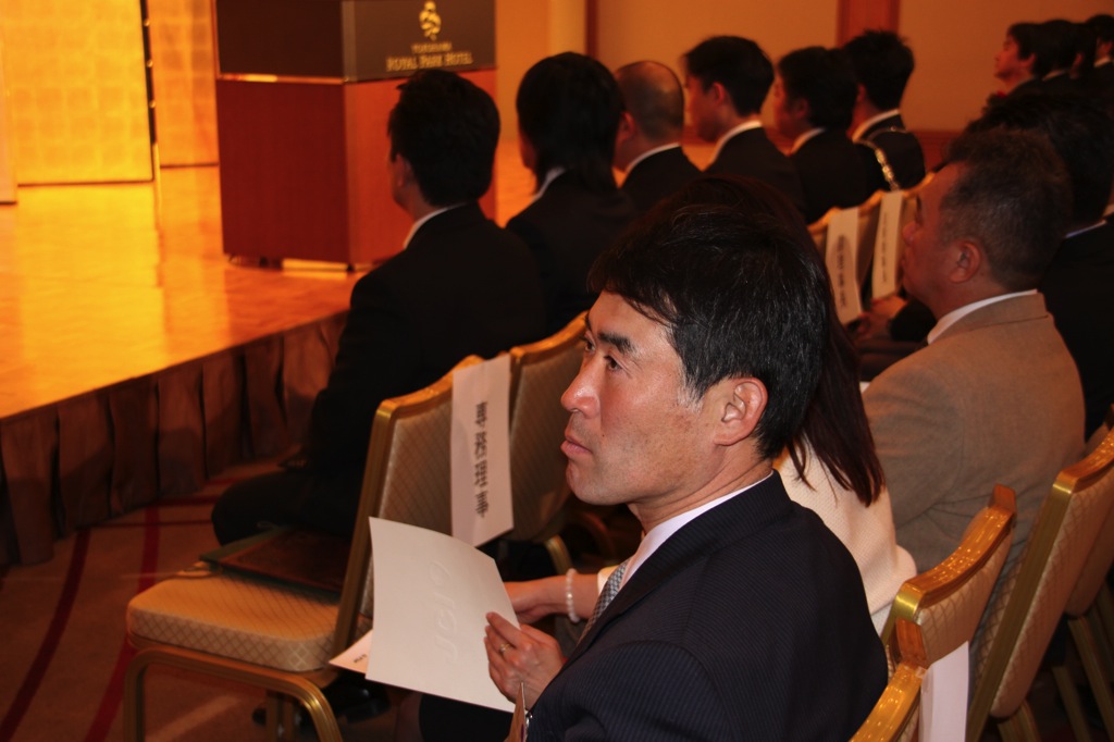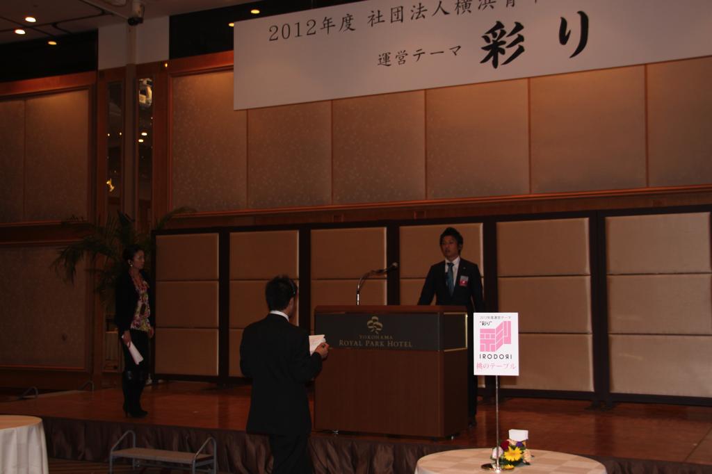新年式典では、岡部理事長より所信表明が行われ、メンバーを始め多くの来訪JC、ご来賓の皆様に本年度にかける想いおよび横浜青年会議所の方向性が発信されました。来賓として挨拶された林市長からは横浜青年会議所が震災復興および地域経済活性化への強い原動力として多方面での活躍を強く望むと語られました。