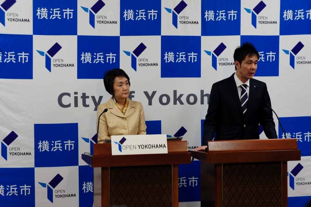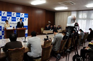 3月11日に行われる「防災意識向上イベント Bo-sai(防災)2012」の記者発表が林市長、岡部理事長より行われました。