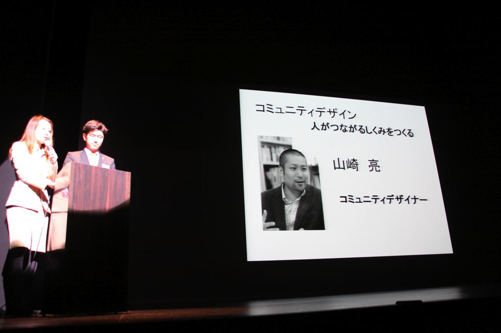 今回の講師には、コミュニティデザイナーの山崎亮氏(studio-L代表http://www.studio-l.org/studio-l.html)をお迎えし「コミュニティデザイン〜人がつながるしくみをつくる」を基調テーマとしたご講演を頂きました。