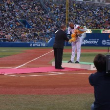 外国人選手として初の通算2,000本安打を達成した横浜DeNAのラミレス選手の表彰式が横浜スタジアムで行われました。