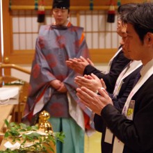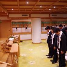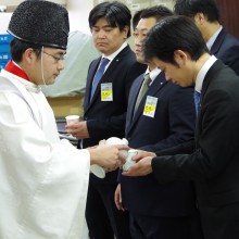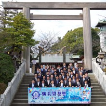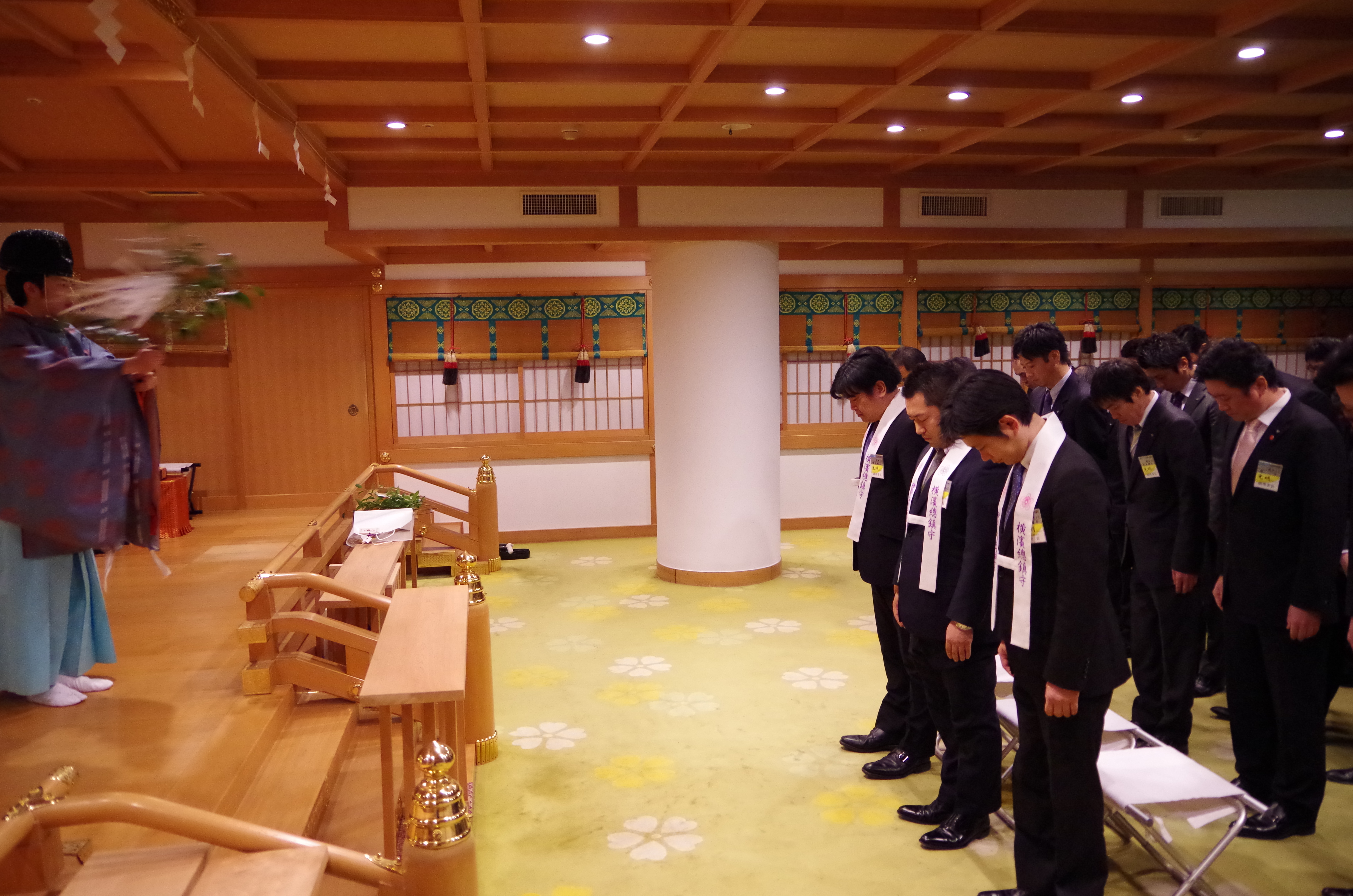 冬空の晴天に恵まれ沢山の人が参拝に訪れる中、伊勢山皇大神宮の神宮殿にて第33回横浜開港祭成功祈願祭が執り行なわれました。齋藤理事長を始めとする理事会構成メンバー・横浜開港祭室メンバーが集い横浜開港祭の成功を御祈祷しました。