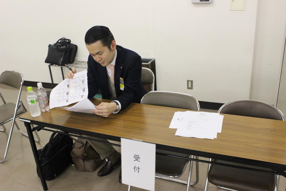 また、 入会面接は19時30分から行われ、会員拡大委員会の丁寧な指導のもと新入会員は必要書類の記入を行いました。