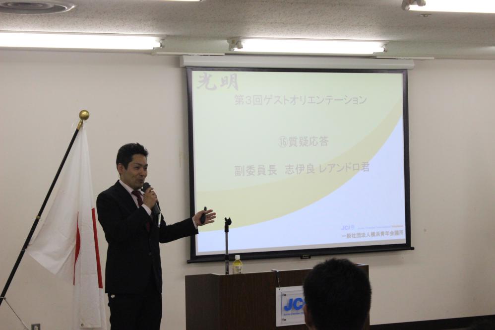 ゲストオリエンテーションは19時から2時間行われ、冒頭挨拶の齋藤貢一理事長から(一社)横浜青年会議所のご挨拶をいただき、
