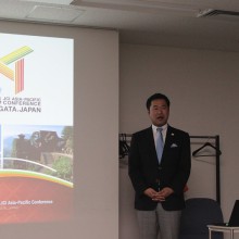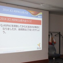 講師講演はASPAC山形大会COCアドバイザーの山形青年会議所特別会員三浦孝一郎先輩がお話をして頂きました。内容は6月に行う第64回JCIアジア太平洋地域会議(ASPAC)山形大会についての歴史や意味や大会の楽しみ方を教えていただきました。