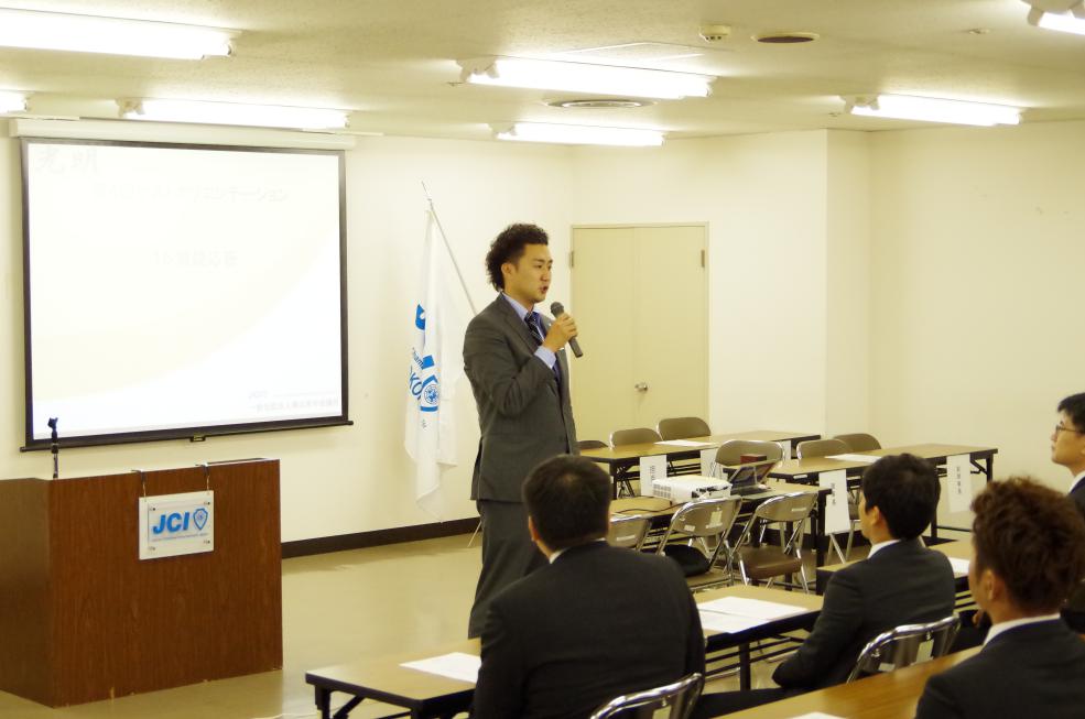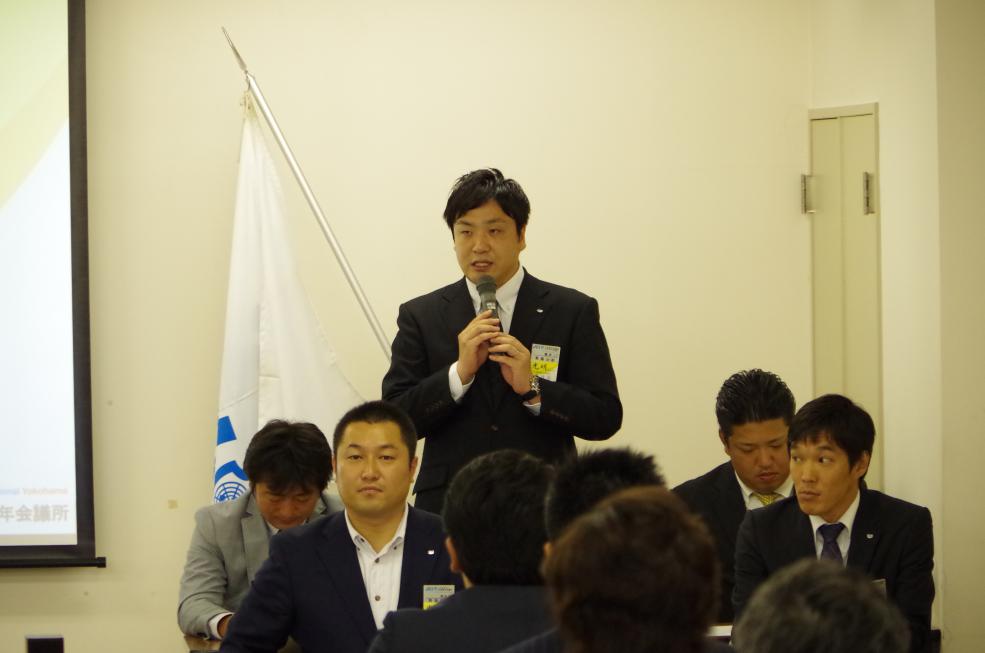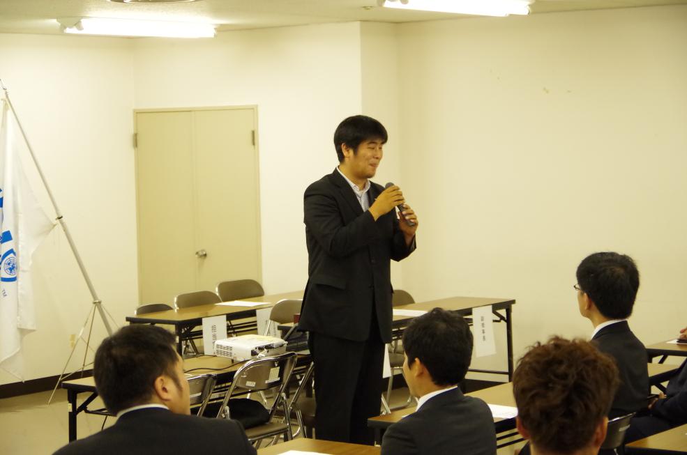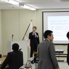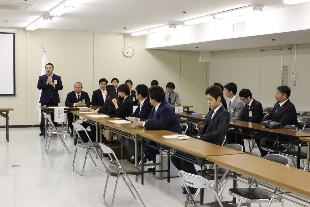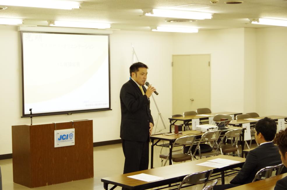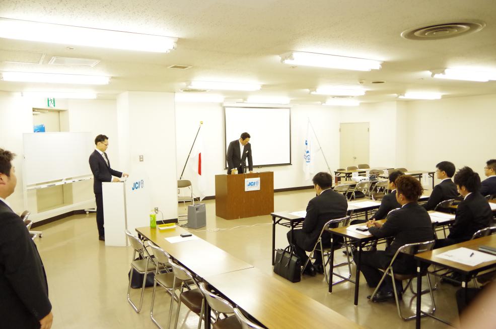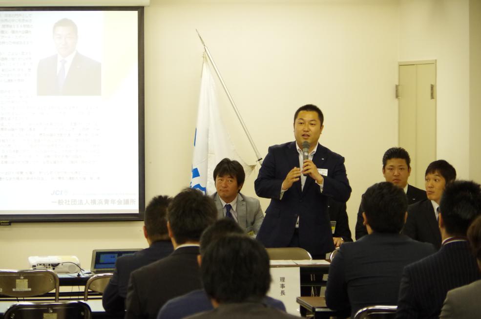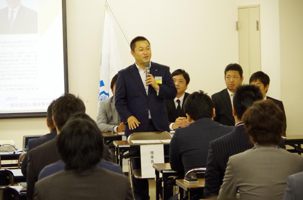 ゲストオリエンテーションは19時から産業貿易センター地下1階の会議室で2時間行われ、冒頭挨拶の齋藤貢一理事長から(一社)横浜青年会議所のご挨拶をいただき、