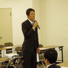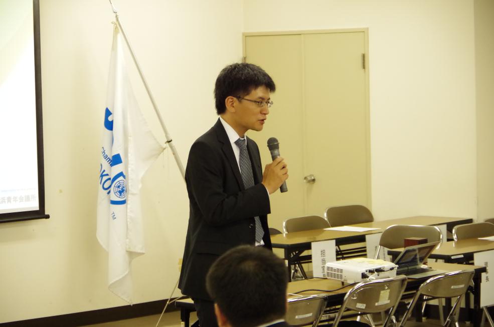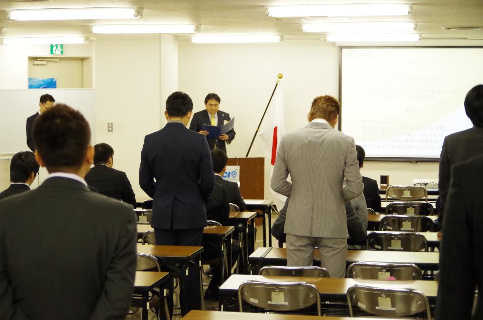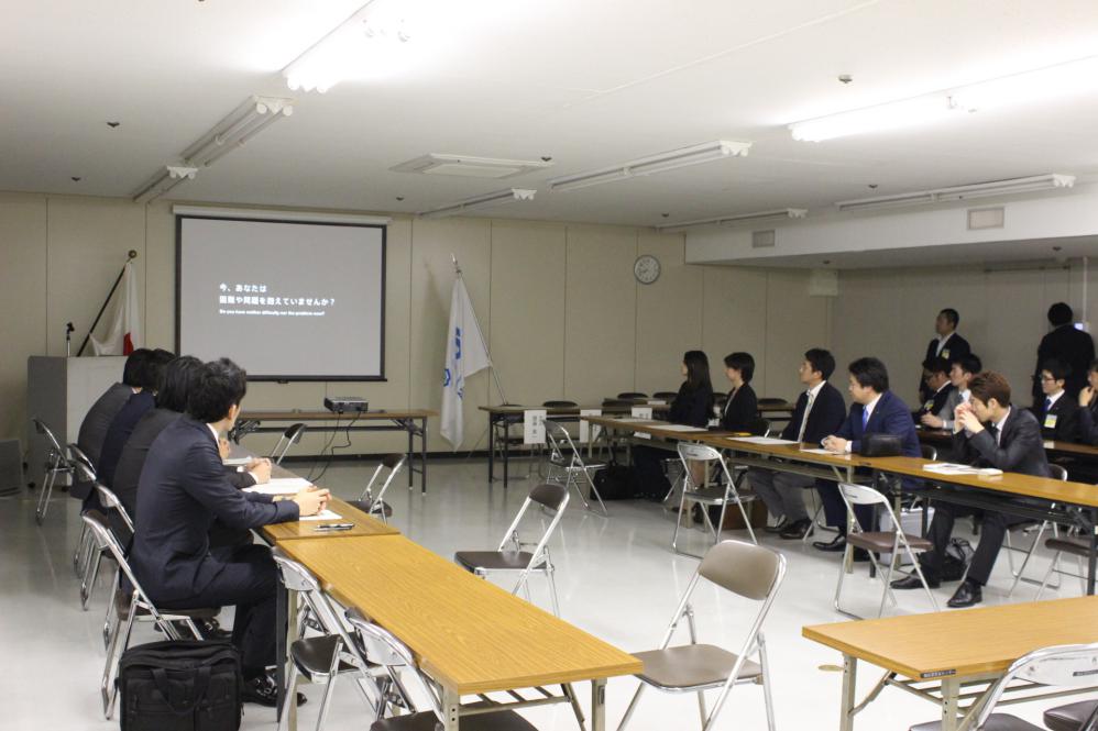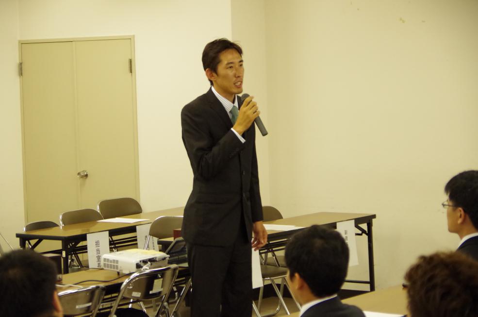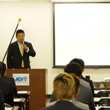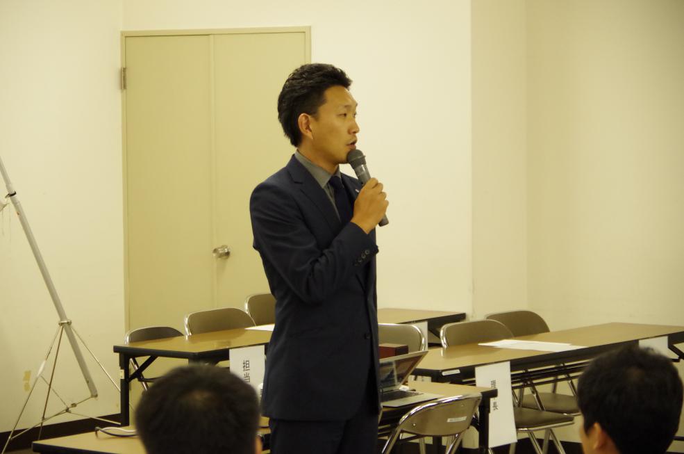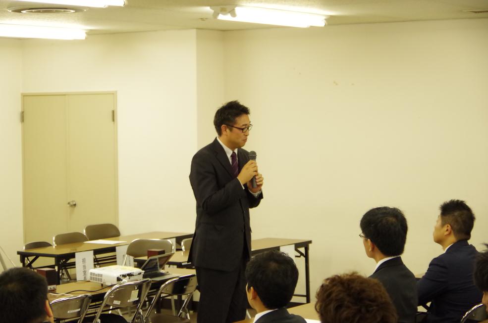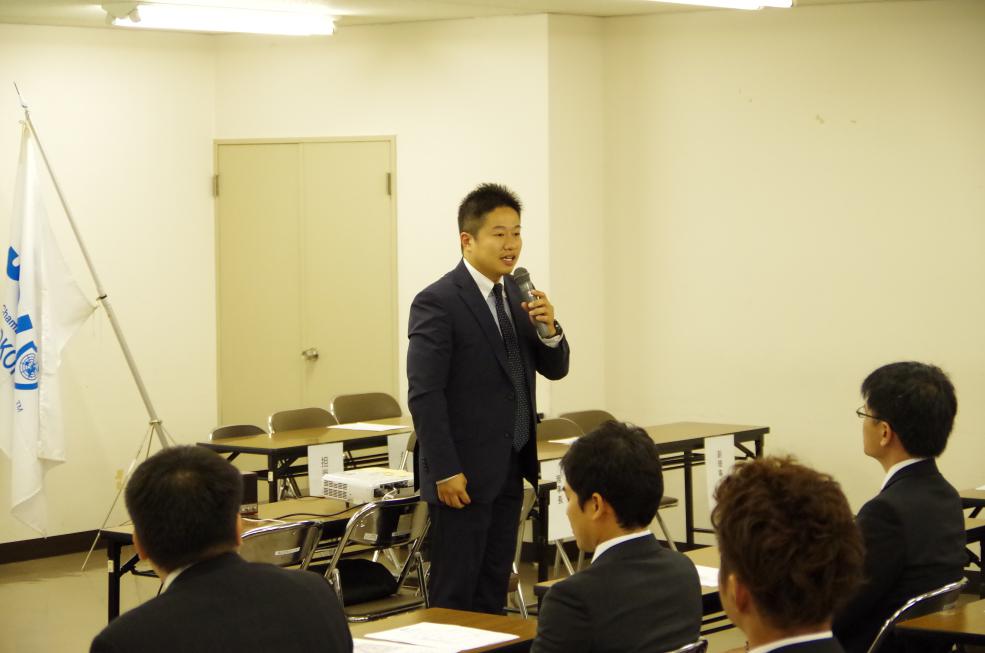 ゲストオリエンテーションは19時から産業貿易センター地下1階の会議室で2時間行われ、冒頭挨拶の齋藤貢一理事長から(一社)横浜青年会議所のご挨拶をいただき、