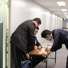 また、入会面接は産業貿易センター4階で19時30分から行われ、会員拡大委員会の丁寧な指導のもと新入会員は必要書類の記入を行いました。
