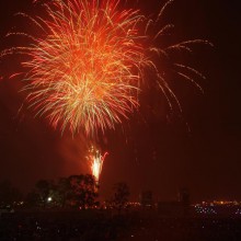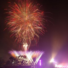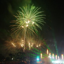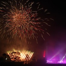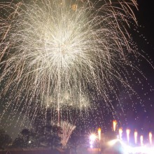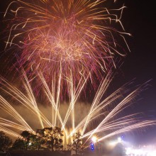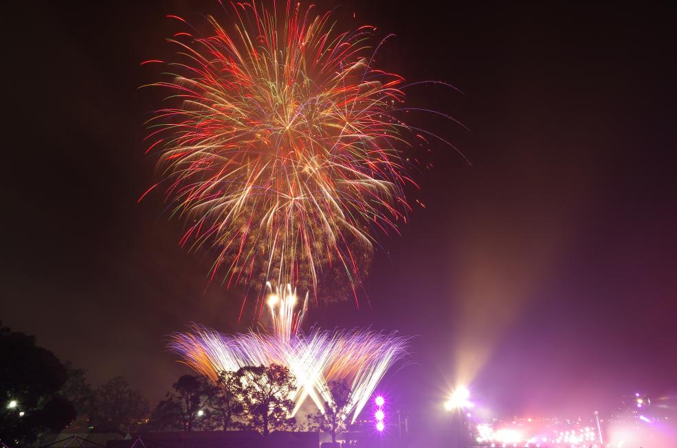 ビームスペクタクルinハーバーの花火が満員の臨港パークの夜空を舞い