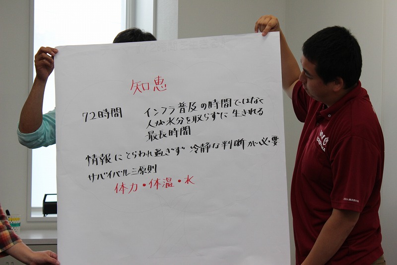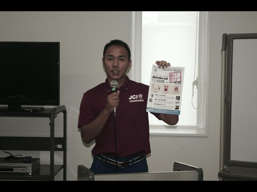 東日本大震災発生から3年が経過しました。一般社団法人横浜青年会議所では、被害にあわれた方々への鎮魂や復興支援等を中心に防災に関する事業を 展開して参りました。今後、災害が発生した際に被害を最小限に留める為には「公助」を理解する事が必要であり、その上で、「自助」「共助」の知識 や技術を得て行動を起こす、すなわち「備えあれば患いなし」の精神が最重要であると考えます。そして、自助・共助の理念を具体化し災害に強いまち 横浜の実現へ向け、より発展していくためには、市民の一人ひとりが自分自身の力で72時間を生き延びなければならないことを理解し、知識や技術を 身につけ、災害時に助け合うという自主性を持った行動がとれる人材を一人でも多く地域に育てることが必要であると考え、AfterBo-sai 72時間生きるプロジェクトを開催致しました。