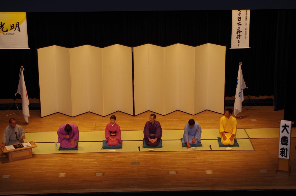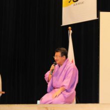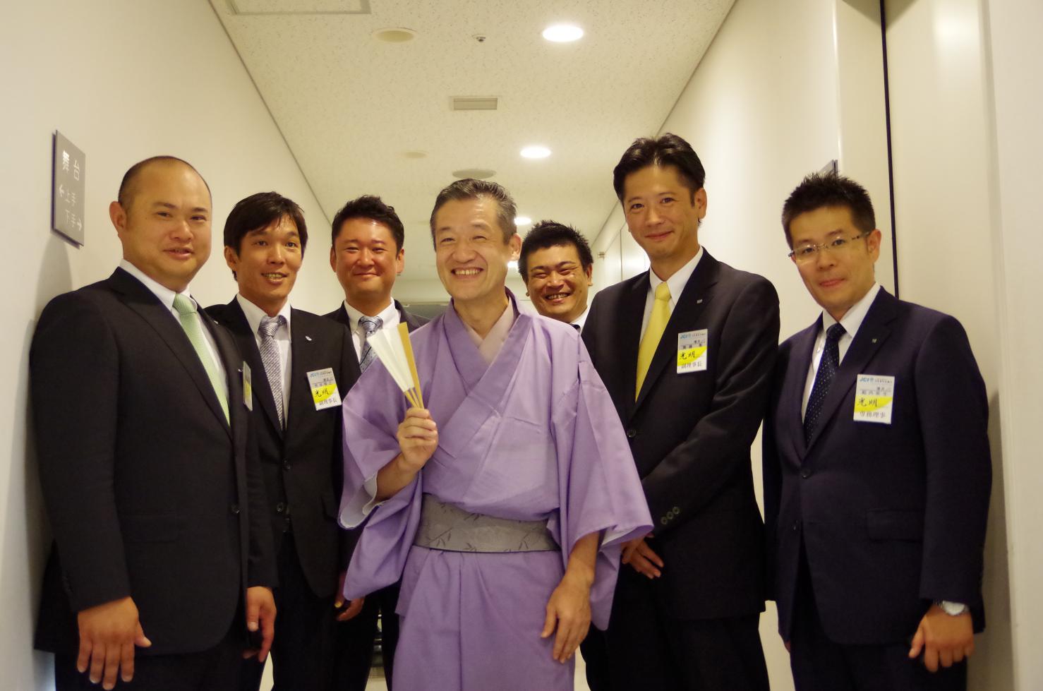 その後のパネルディスカッションでは大喜利形式にて進められ、司会者には引き続き三遊亭 好楽氏、三遊亭 京楽氏にも参加して頂き、ゲストに行政関係者代表として横浜市会議委員 斉藤 達也氏、市民代表としてNPO法人よこはま・七つ星代表理事 高松 清美氏、企業代表として石井造園株式会社代表取締役 石井直樹先輩、横浜青年会議所からは副理事長 齊藤 喬君の5名にBo-saiに纏わるお題から笑いの中にも学びの有る回答をして頂きました。