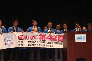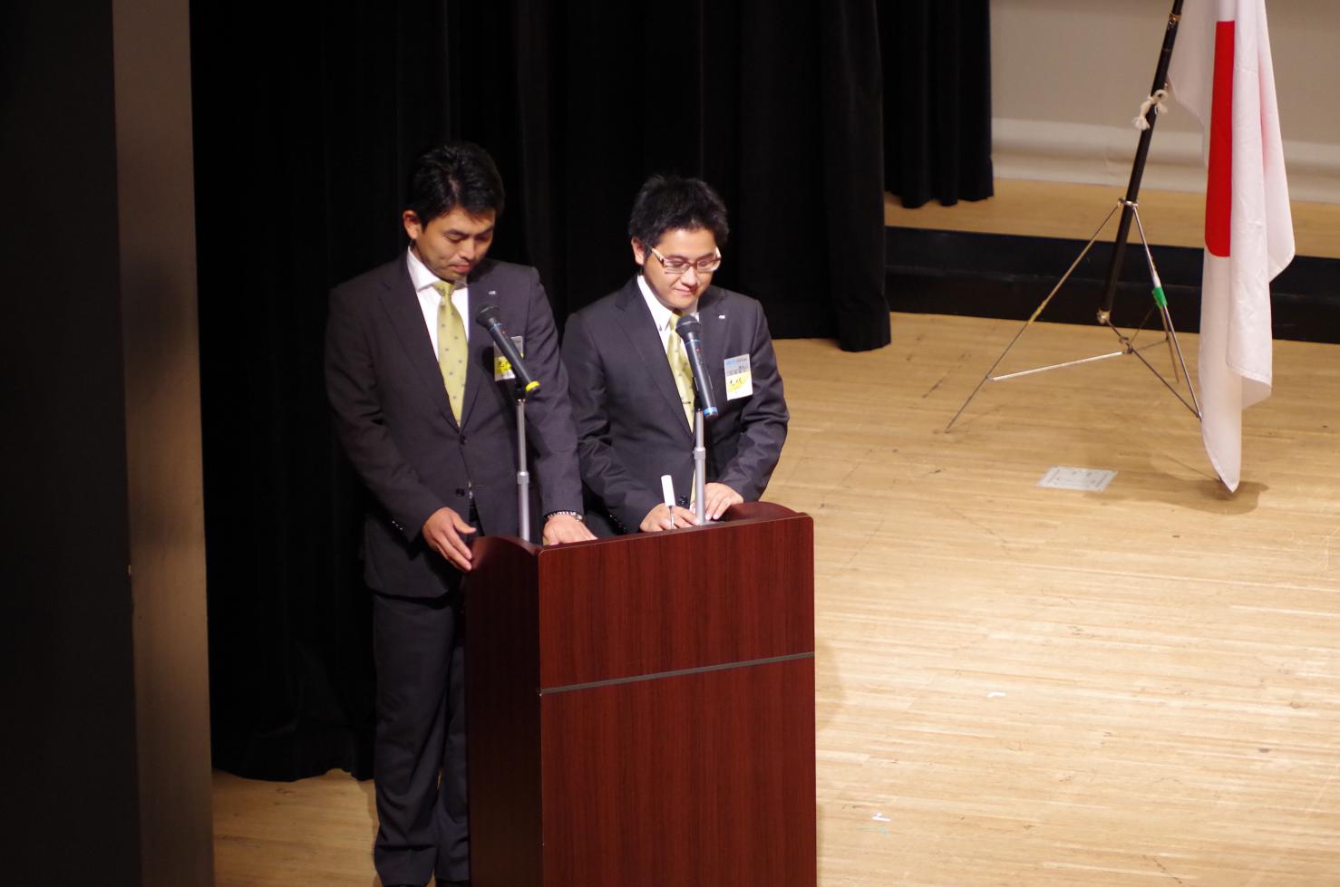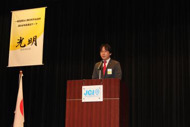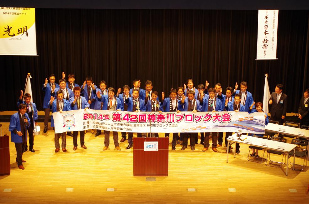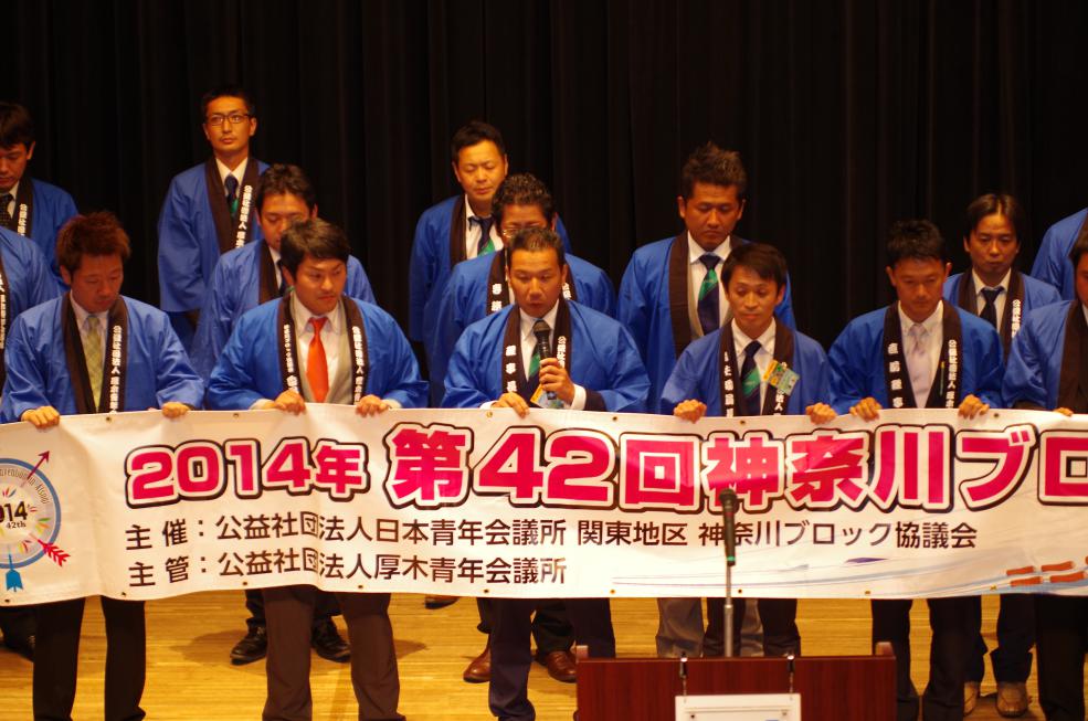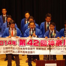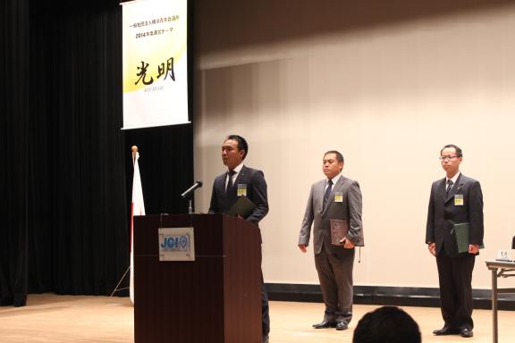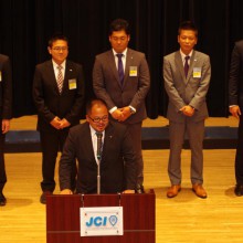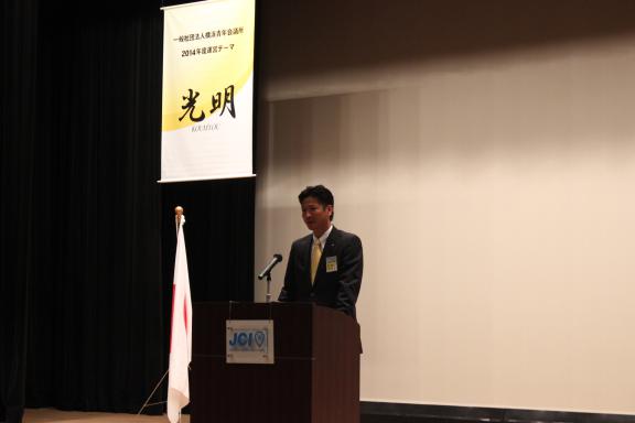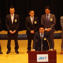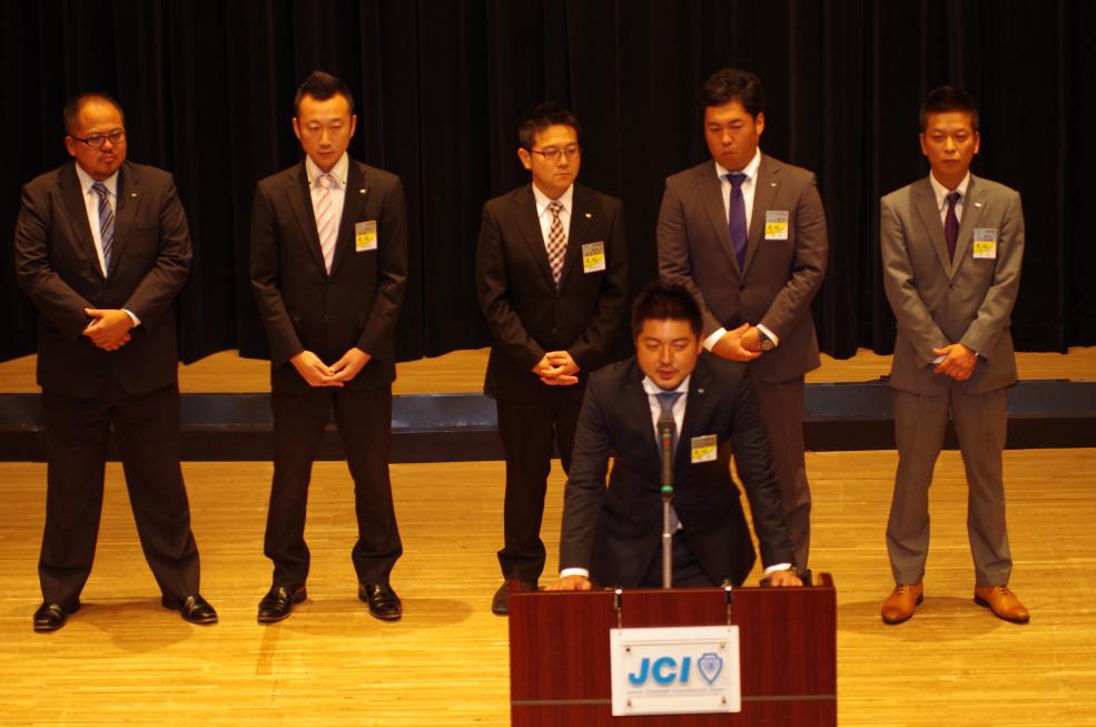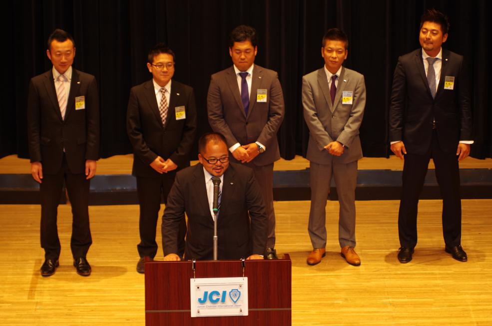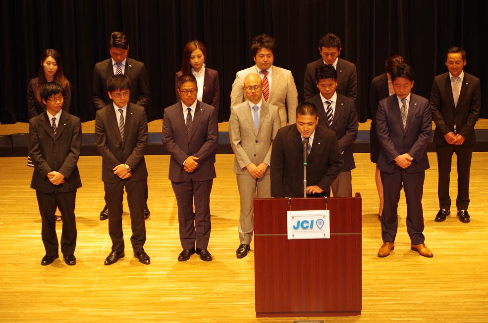 例会終盤には(一社)横浜青年会議所の新メンバーとして新たに14名が登壇し理事会メンバーから