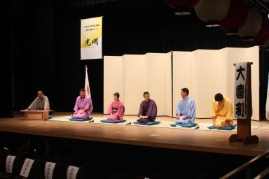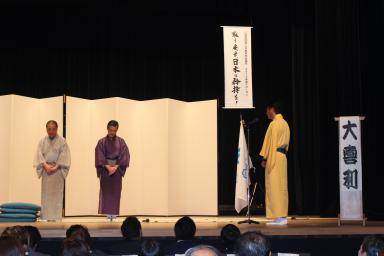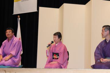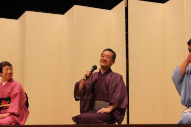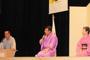 講師講演に三遊亭 好楽氏、三遊亭 京楽氏に寄席として防災落語のお話をして頂きました。