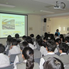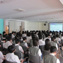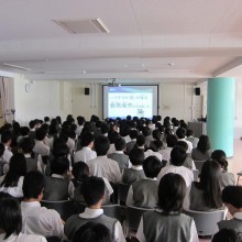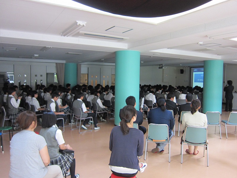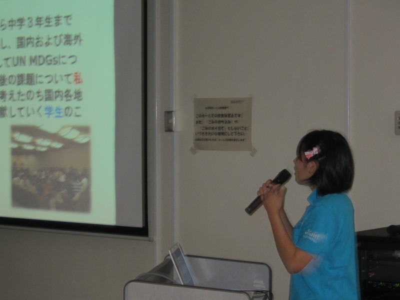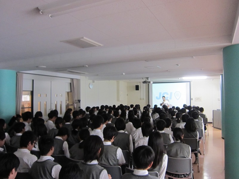 一般社団法人横浜青年会議所より推薦された益田楓香大使が、自身の通う学校で事業報告をいたしました。最初に、(一社)横浜青年会議所の方がUNMDGsについて伝え、そのあと益田大使が学んだこと、自身の想いを伝えられました。