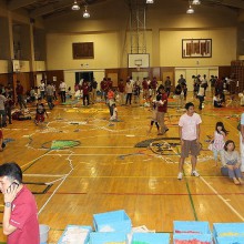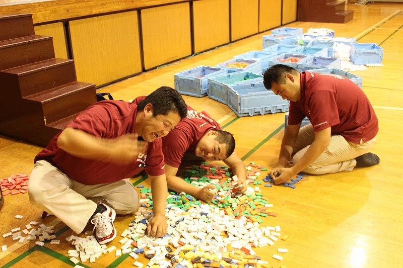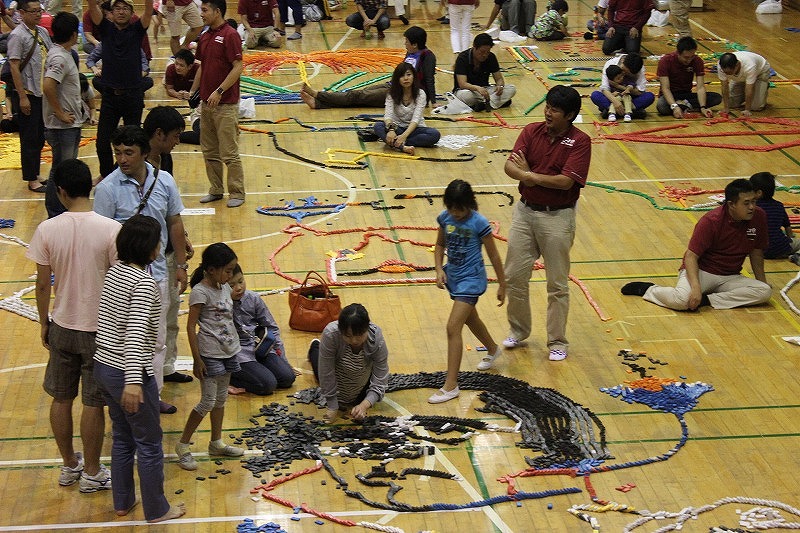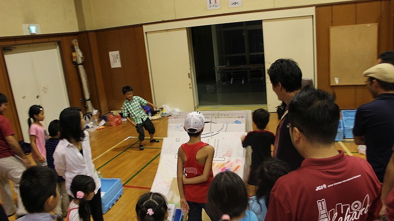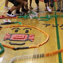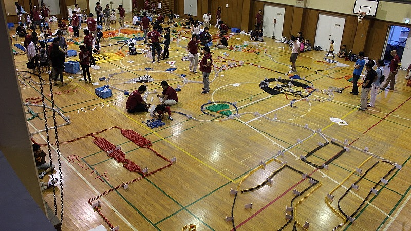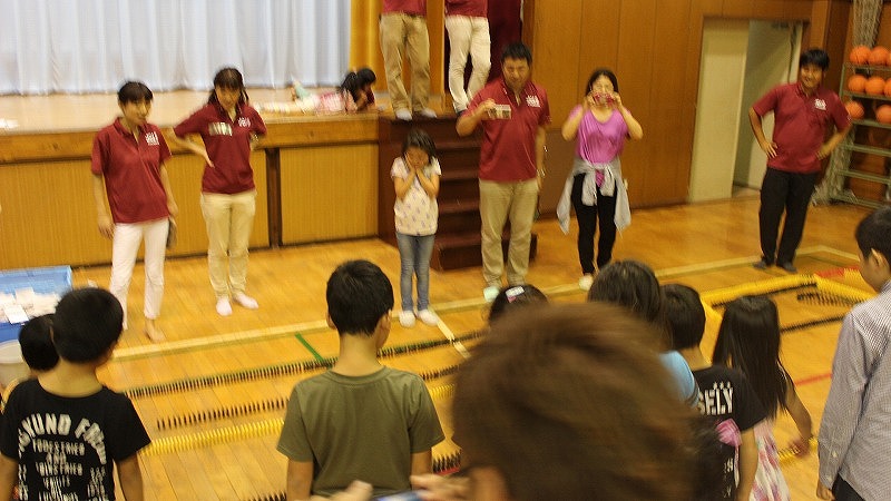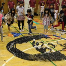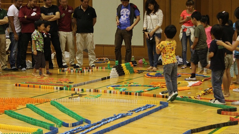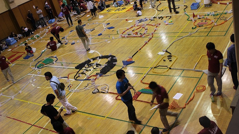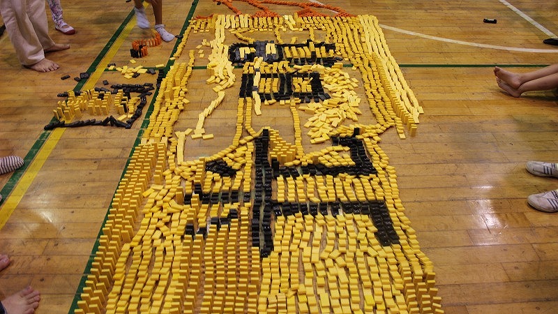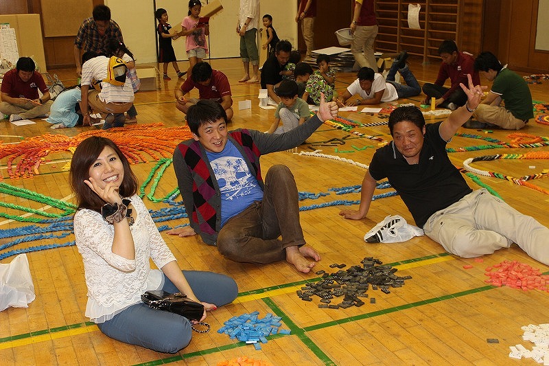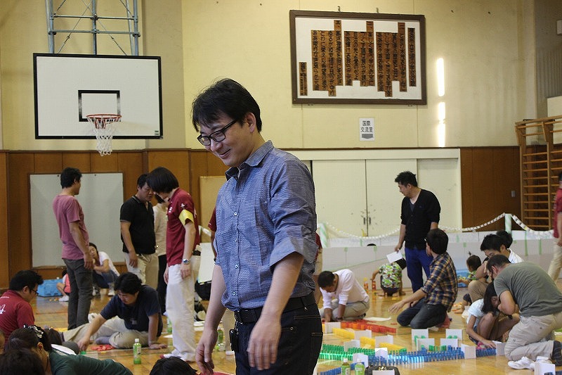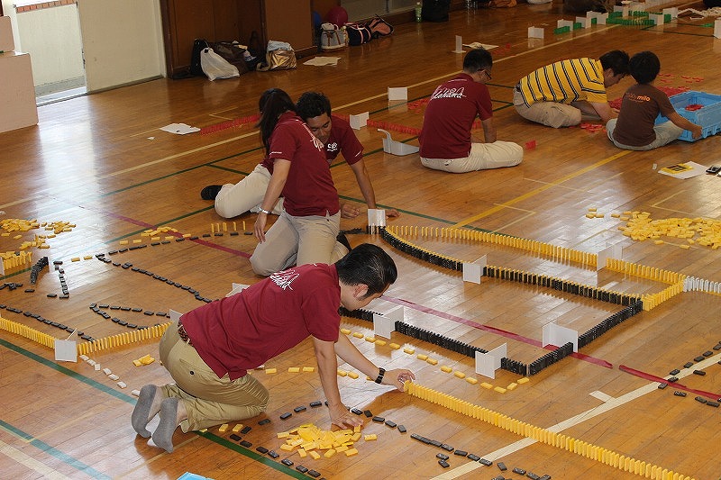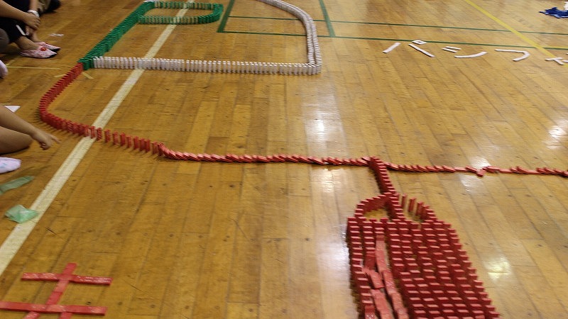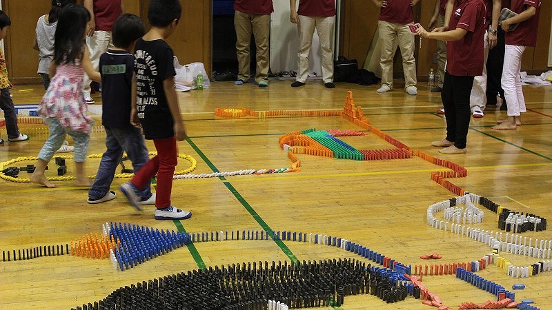 ドミノ倒しは、並べきった達成感、そしてみんなで力を合わせたドミノが連続的に倒れていくかどうかの緊張感がありましたが、全てのドミノが倒れ参加者全員が感動の渦に巻き込まれました。