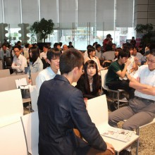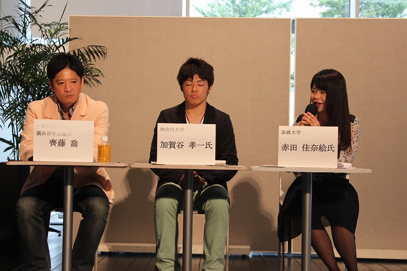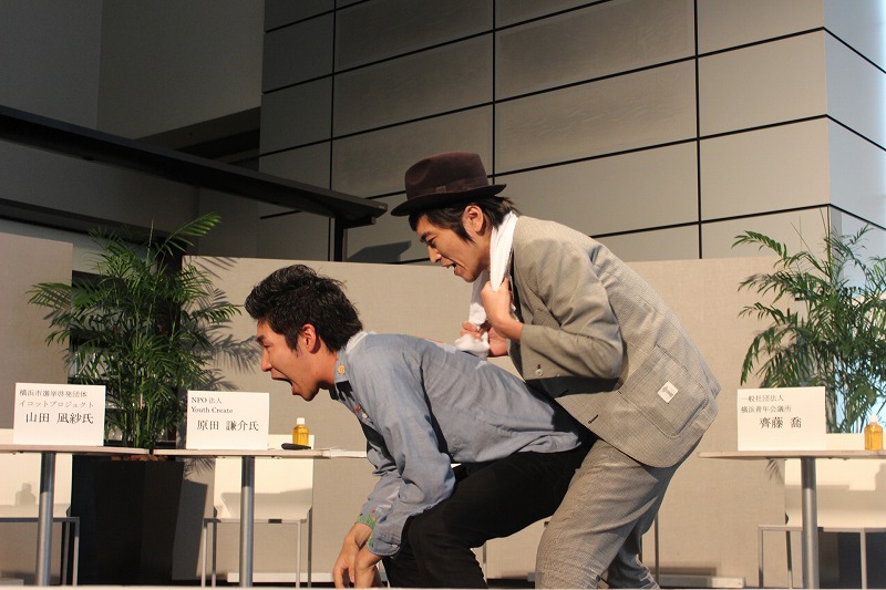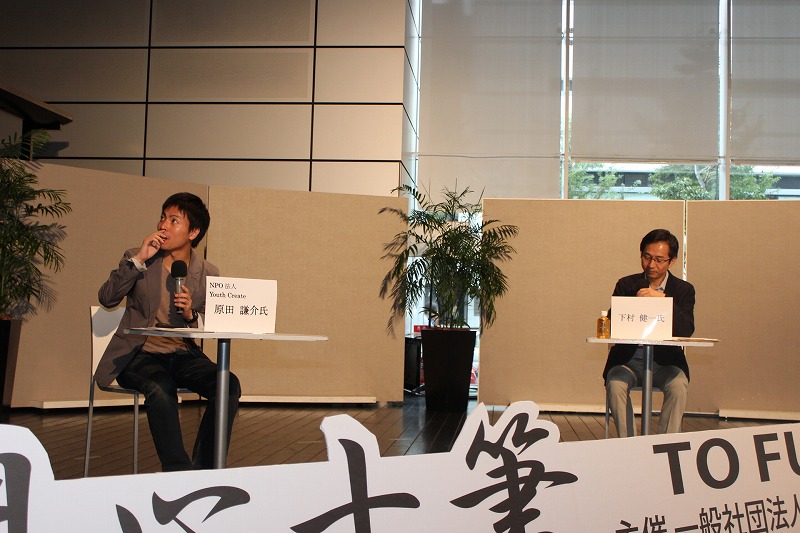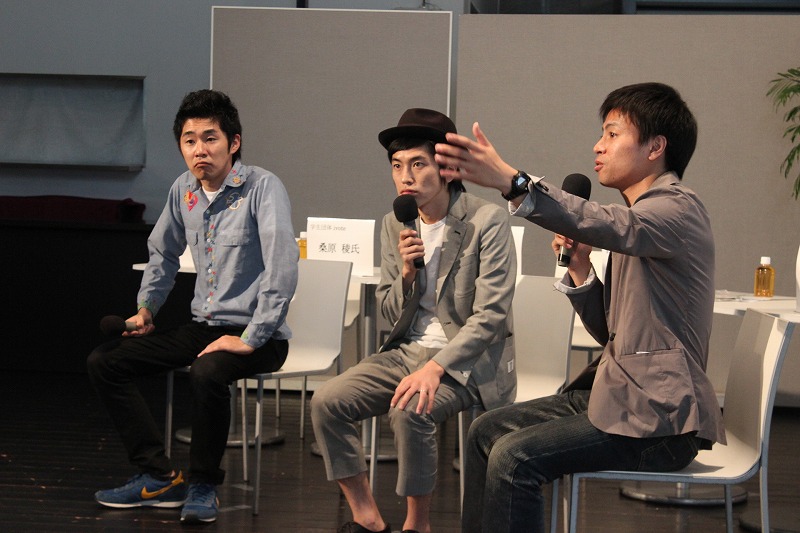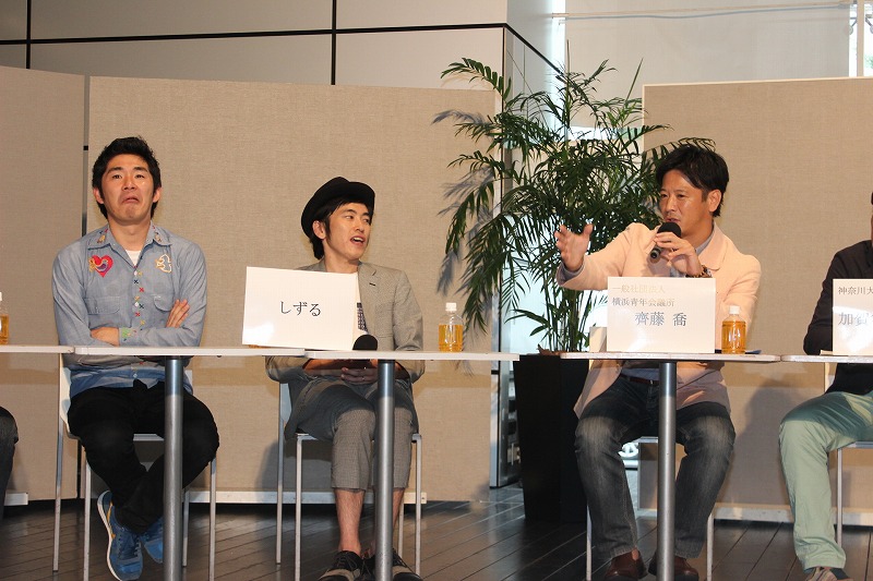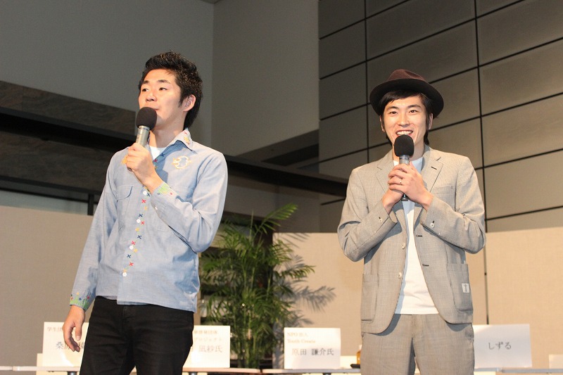 続いて二部では、進行役にNPO法人YouthCreate代表の原田謙介氏、ゲストにお笑いコンビのしずるさんを迎えて『独自の目線を持つ意義と、自分で未来を描くには』についてトークライブ&座談会を行ないました。